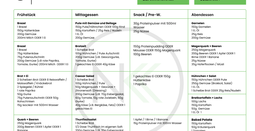 Ich sitze am Tisch, in meiner Wohnung. Vor mir ausgebreitet ein Sammelsorium an Papieren. Im Hintergrund läuft leise die Playlist “Stimmungsmacher”. Ich fühle mich aber überhaupt nicht nach Stimmung heute. Ich bin mitten in der Abnahme für meine Bodybuildingshow. Noch acht Wochen. Jetzt heißt es dranbleiben und durchziehen. Ich habe schon einige Kilos verloren, aber es liegen auch noch einige vor mir. Wie jeden Sonntag überlege ich mir was ich die kommende Woche Essen will. Denn wenn man so tief in der Prep (also die Preparation, Vorbereitung für die Bodybuildingshow) steckt ist Planung wichtig, ansonsten geht man nicht nur hungrig, sondern sehr hungrig ins Bett. Jede Woche aufs neue berechne ich Mahlzeiten und versuche die perfekte Kombination aus Makros und Mahlzeitentiming zu finden. Aber ich habe keine Lust mehr. Es nervt nur noch! Stundenlang sitze ich jede Woche vor diesen doofen Papieren und versuche mit irgendwelchen Zahlen zu jonglieren. 100g Quark mehr hier, 20g Nudeln weniger hier. Mist, wieder 200 Kalorien drüber. Vielleicht war es doch die falsche Entscheidung ohne einen Coach auf die Bühne zu gehen! Ich habe einfach nicht das Zeug dazu. Ich kann das alles nicht mehr. Den Tränen nahe sitze ich am Tisch und will einfach nicht mehr. Ich versinke in Selbstmitleid und bin kurz davor nicht mehr weiter zu machen. Aber dann trifft es mich wie der Schlag! Ich bin diejenige die sonst alles hinnimmt wie es ist. Denn Dinge die ich nicht ändern kann versuche ich zu akzeptieren. Wenn ich merke, dass mich etwas stört Frage ich mich selbst: Was genau stört dich daran und kann ich das ändern? In diesem Moment stört es mich, dass ich jede Woche Stunden damit zubringe den perfekten Plan zu entwerfen. Kann ich das ändern? Ja! Ich könnte immer dasselbe Essen dann brauche ich nur noch einen einzigen Plan! Nein, das kann nicht die Lösung sein. Es muss doch noch eine andere Option geben. Generell Esse ich die meisten Gerichte sowieso alle paar Wochen wieder, ich erfinde das Rad nicht jede Woche neu. Ich schaue auf die Papiere vor mir und realisiere, dass meine Mahlzeiten immer aus ähnlichen Kalorien und Makroverteilungen bestehen. Was, wenn ich nicht immer ganze Tage, sondern nur einzelne Mahlzeiten plane. Wenn ich die Kalorien, die ich am Tag zu mir nehmen möchte auf alle Mahlzeiten verteile. Somit hätte mein Frühstück immer dieselbe Anzahl an Kalorien und Makros. Wenn ich also fünf verschiedene Frühstücke berechne, mit denselben Kalorien, kann ich sicherstellen, dass ich meine Kalorien nicht überschreite für den Tag, aber trotzdem immer abwechslungsreich esse! Und so war das Mix-and-Match System geboren, das ich heute noch im Coaching anwende.